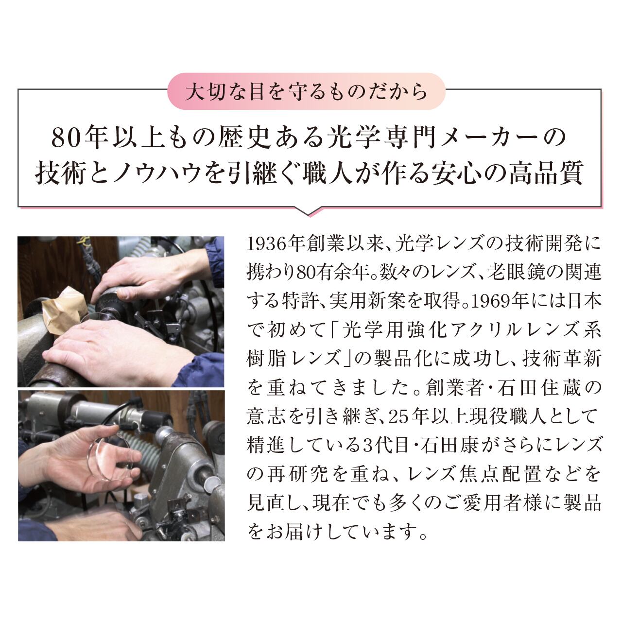80年以上も歴史と技術のある、日本の光学専門メーカーの職人が1点1点丁寧に作っているので、品質も機能も安心充実。